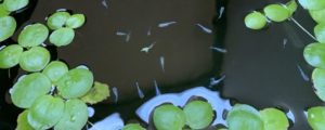 屋外ではアブラムシが浮き草に発生することがあります。葉の裏に黒や緑の小さい虫が群がっていたらアブラムシです。メダカを飼育していれば、葉ごとそっと水中に沈めることでメダカがアブラムシを食べてくれます。手で振り落として水面に落としてもOKです。またナメクジや蛾の幼虫が葉をかじることもあります。見つけ次第除去しましょう。屋外では放っておくと様々な生き物がやって来るので、時々様子を観察して被害がないかチェックすることをおすすめします。