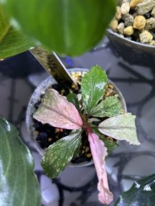 根にしっかり巻いたり、吸水させすぎてべちゃべちゃはNG。ブセファランドラはかなり神経質。 - 特に水上葉の場合、根がしっかり張っていないタイミングで乾きやすい用土にすると、明らかな水不足の反応。