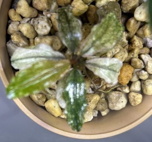 比較的ブセ飼育に慣れてきた頃に導入したため、底砂は最初から日向軽石&水苔で飼育しています。日向軽石のみでは水分不足で葉焼けしてしまうことが分かったので、ピンクバリエガータ(b個体)の反省を生かしています。