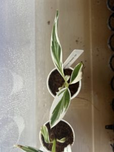 購入時写真の一部をお借りしています。薄くピンクがかった白の強い葉が美しい個体です。ドリルが出て健康そうです。