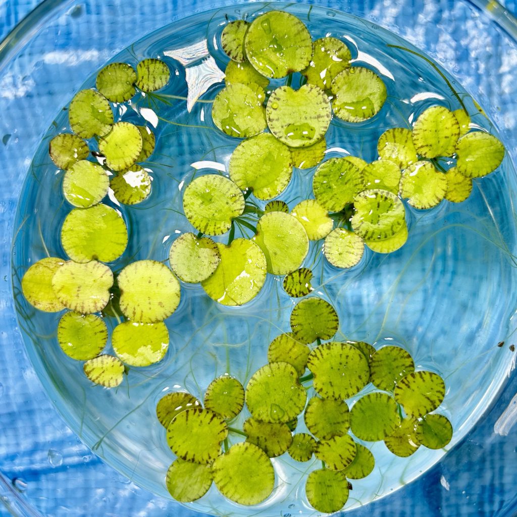 丸い葉が水面をぎっしり覆う様子は、和風金魚鉢にも、スタイリッシュな室内水槽にもマッチ。夜間にライトを当てれば、水面に映る揺らぎがインテリアライト代わりになります。